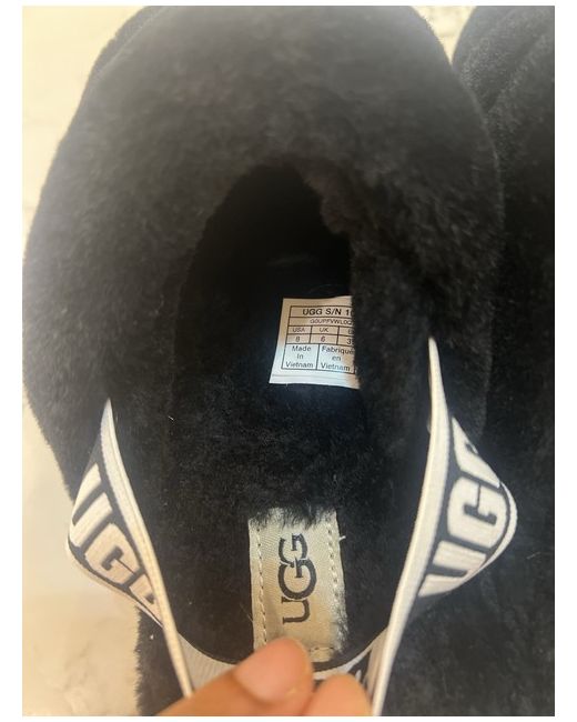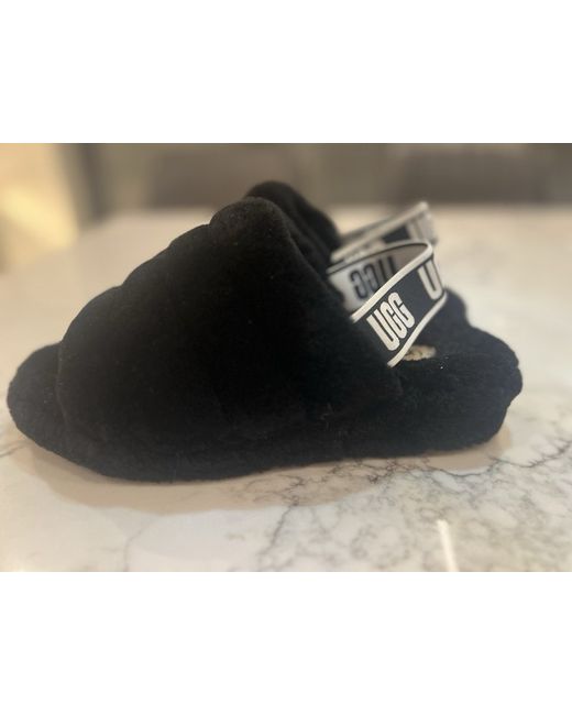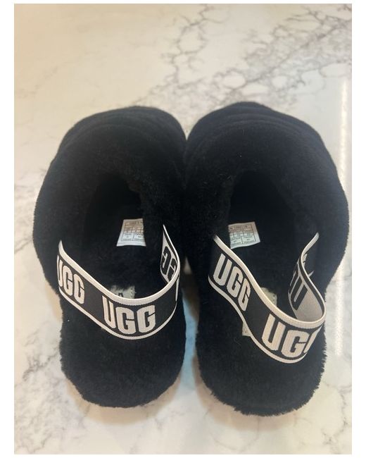 The UGG Fluff Yeah Slide in size 6 is a stylish women's slipper in a sleek black colour. With a fur upper material, these sliders offer comfort and warmth, making them perfect for lounging around the house. The UGG brand ensures quality and fashionable design, making these slippers a must-have addition to any woman's shoe collection.