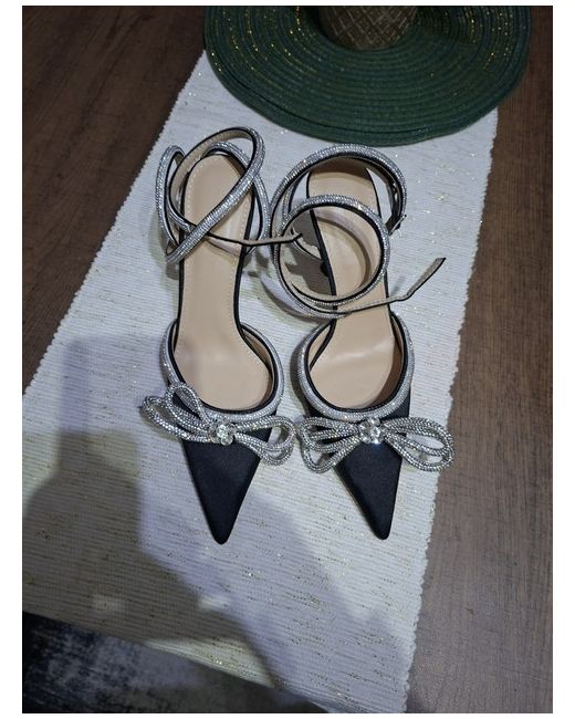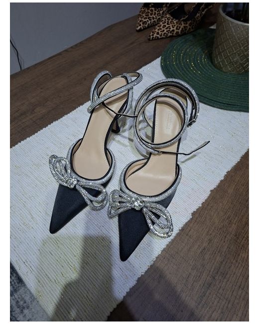 T he Mach & Mach Heels are a stylish pair of black leather stiletto heels, perfect for a party or cocktail occasion. Featuring a pointed toe, strappy design, and buckle closure, these shoes are a sleek and elegant choice for any summer event. The leather lining and insole provide comfort and quality, making these heels a must-have addition to any woman's shoe collection.