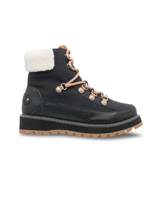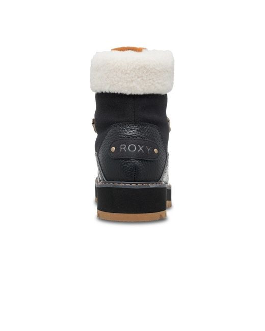 Roxy WarmFlight 3 with 200 gram thermal insulation weather rated to -40 degrees C/-40 degrees F, Water resistant treated genuine leather and suede, Scotchgardâ„¢ treated materials, Lace up with D-rings, Gusseted tongue with padded collar, Sherpa collar at opening edge, Sherpa lining with squishy TPE insole for all day comfort, 82% Leather, 16% Polyester 2% Metal.