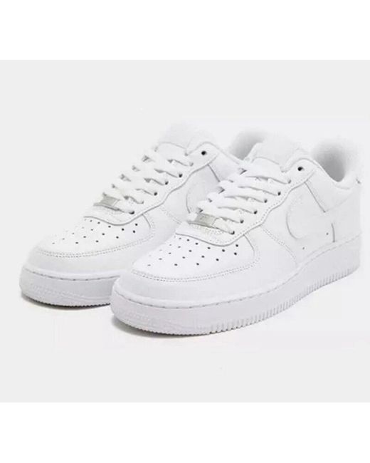 The product is a size 10 UK Air Force One White Leather sneaker by +8000. This casual shoe features a lace-up closure, rubber cleat type, and logo accents. The standard-width trainer is designed for comfort and is ideal for walking activities during the summer season. Made with leather upper material and a rubber outsole, this unisex adults' shoe in the Nike Air Force product line combines style and functionality for everyday wear. No returns And no box