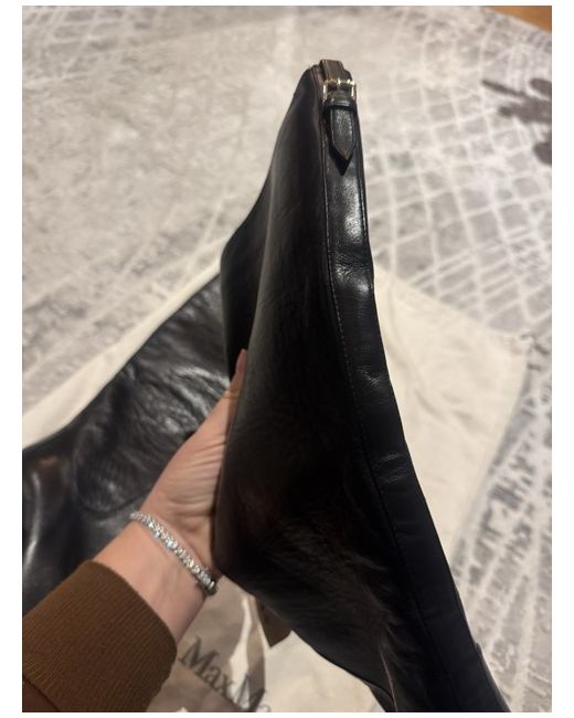 These Max Mara long black boots in size 37 are a stylish and elegant choice for women. Made from high-quality leather with a standard shoe width, these booties are perfect for adding a touch of sophistication to any outfit. The classic black colour and premium brand make these boots a versatile and timeless addition to any wardrobe.