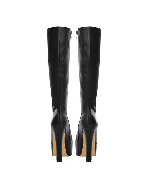 Women's Black Platform Knee High Boots Round Toe