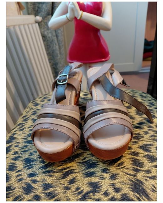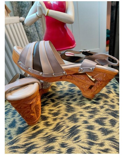 lucky lou shoes.. beautiful carved wooden tiki heel..never been worn come complete with dust bag. size 5