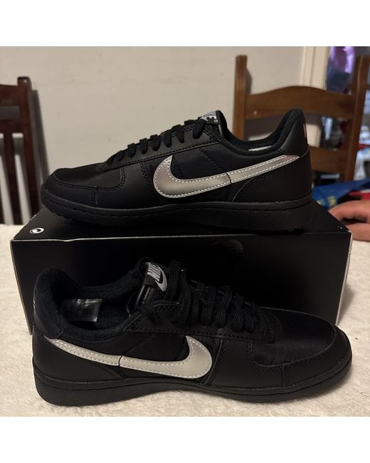 The Nike Women's Field General in UK size 6.5 in black is a stylish and practical trainer with a low top design and lace-up closure. Featuring a durable rubber outsole, this shoe is perfect for casual occasions and provides the signature Nike logo accents. With a standard shoe width, this model from the Nike Field General product line offers comfort and style for women who enjoy wearing sneakers. Box has no lid and I post daily