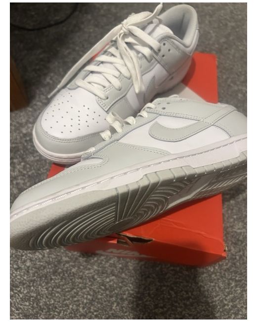 The NIKE Dunk Low Women's Grey Trainers in size 7 are a stylish and versatile choice for casual wear. With a low top design and lace-up closure, these trainers offer comfort and a trendy look. The grey colour and logo accents add a touch of sporty flair, while the leather upper and synthetic sole provide durability and quality. Perfect for spring, these retro-inspired Nike Dunks are a must-have for any woman's footwear collection.