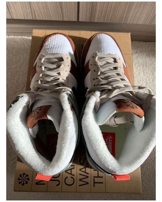 Belonging to Nike’s eco-conscious ‘Move to Zero’ campaign, the Dunk High ‘Toasty’ is manufactured with a mix of recycled fabrics. Fleece liner and insoles keep your feet nice and toasty, while the autumnal combination of ‘Summit White’, black, ‘Oil Green’, and ‘Rattan’ are sure to match your surrounding aesthetics.