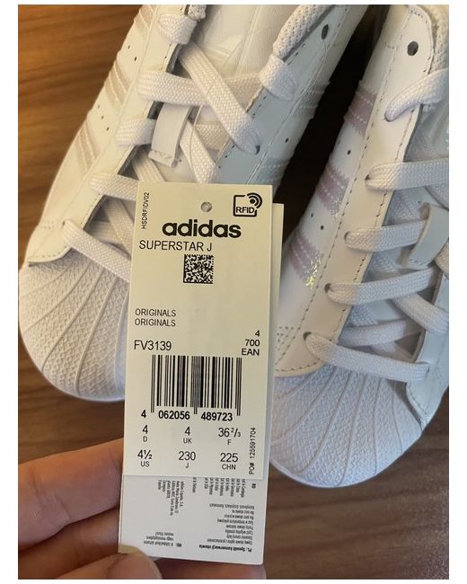 The product is a brand new pair of Adidas women's trainers in size 4. These low-top sneakers feature a classic lace-up closure and a standard shoe width, suitable for casual occasions. The white colour and leather upper material make them a stylish choice, while the rubber outsole provides durability and comfort. Part of the Adidas Superstar product line, these sneakers are a must-have for women looking for a fashionable and reliable footwear option.