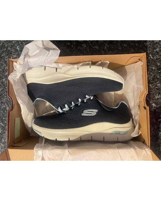 The Skechers Women's Arch Fit UK 6.5 trainers are designed for casual occasions with a low top style and rubber outsole for comfort and durability. The navy/light blue colour combination and the Skechers logo accent make them a stylish choice for women who enjoy sports and walking activities during the summer season. The foam insole provides added support, making these sneakers a great option for those looking for a standard shoe width that offers both style and functionality.