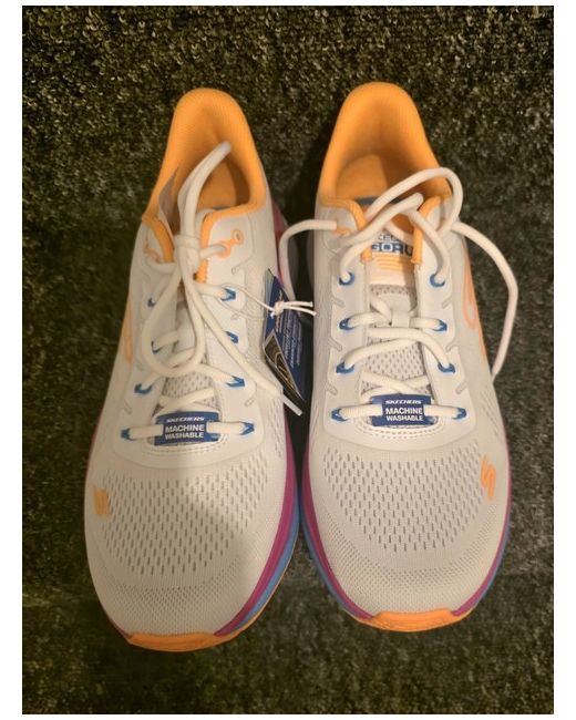 selling this beautiful Trainers , New without box. in perfect condition . in size 7 . The Skechers Performance Max Cushioning Propulsion Textile Women's Trainers are designed for active women who value both style and comfort. Featuring a lace-up closure and a rubber outsole, these white and orange sneakers are perfect for summer activities such as walking. The foam insole provides added cushioning, making them ideal for all-day wear. The textile upper and polyester lining ensure durability and breathability, while the wedge heel style adds a touch of femininity to the design. With the Skechers Performance brand, you can trust in the quality and performance of these trainers for your active lifestyle.