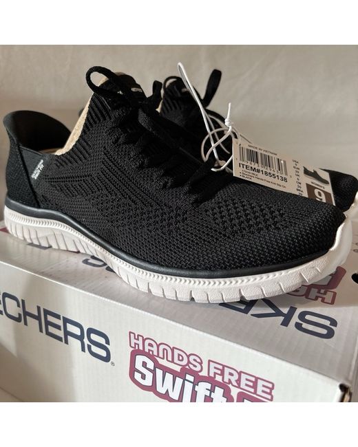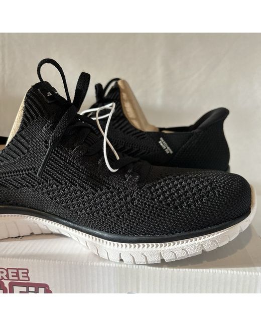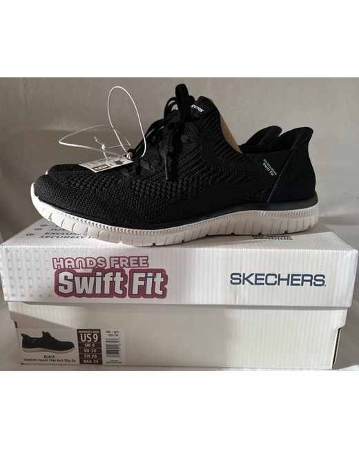 The Skechers Hands Free Swift Fit Ladies Trainers in size 6 are a brand new pair of black slip-on sneakers designed for casual occasions. Featuring a comfortable cushioned insole made of foam, these trainers offer hands-free convenience with the Swift Fit technology. With a rubber outsole for durability, these sneakers are part of the Skechers Memory Foam product line, perfect for walking and other summer activities. The knit fabric upper and fabric lining add to the comfort and style of these trendy trainers from the renowned Skechers brand. Brand new and boxed. Please feel free to ask if you have any questions.
