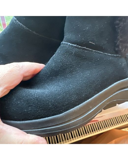 Black suede arch fit with faux fur trim elasticated to to ease fit.