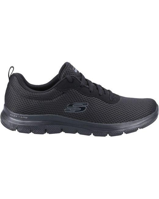 Your sporty style options are more flexible than ever wearing the Skechers Flex Appeal 4.0 - Brilliant View shoe. This lace-up trainer features a breathable athletic mesh upper with a cushioned Air-Cooled Memory Foam insole.
