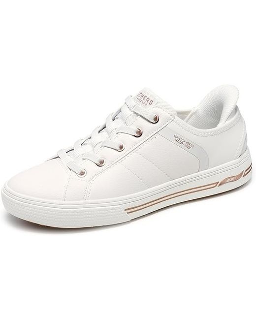 Designed with our Heel Pillow®, this vegan slip-on has been granted the APMA Seal of Acceptance and features a duraleather upper with stretch laces and a removable Arch Fit® insole. Patented Skechers Arch Fit® insole system with podiatrist-certified arch support.