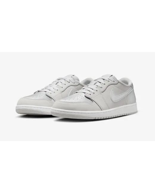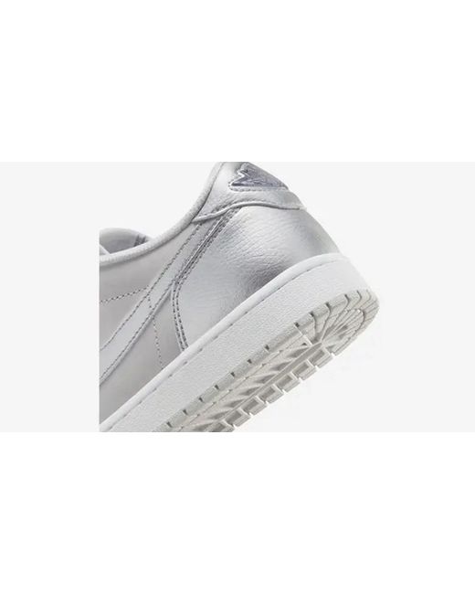 The Jordan 1 low Metallic Silver UK3.5 is a stylish and trendy sneaker designed for women. Featuring a lace-up closure and made with leather upper material, this trainer is perfect for casual occasions during the summer season. The metallic silver colour adds a touch of glam to your outfit, while the rubber cleat type provides comfort and durability. With the iconic Air Jordan logo as accents, this shoe is a must-have for sneaker enthusiasts looking to make a statement.