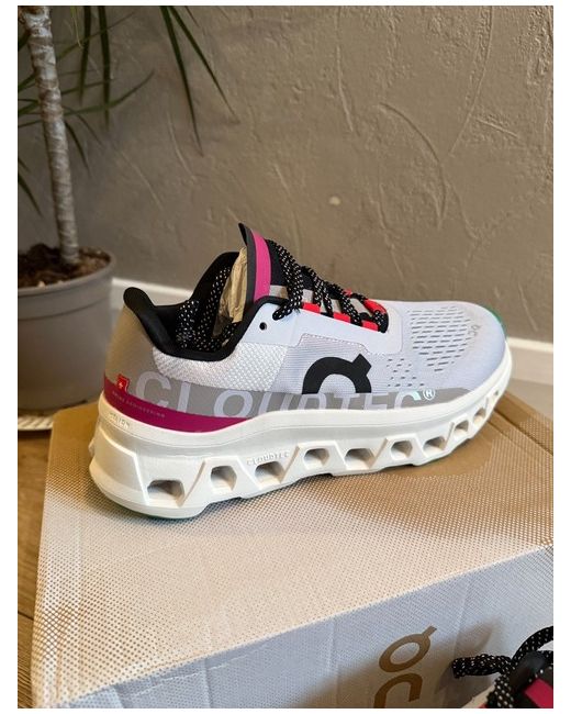 The On Cloudmonster trainers in grey, white, and pink are a stylish and comfortable choice for women in UK size 6. The sneakers feature the signature On Cloud design, combining fashion and function seamlessly. The white colour adds a versatile touch to any outfit, making these trainers a great addition to any woman's shoe collection. Perfect for both casual and athletic wear, these trainers are a must-have for those looking for a blend of style and comfort in their footwear.