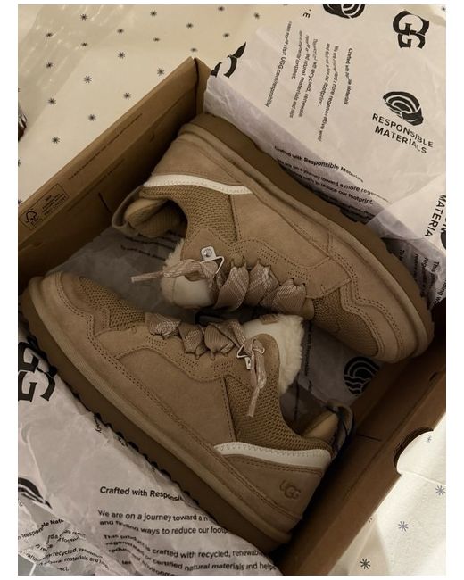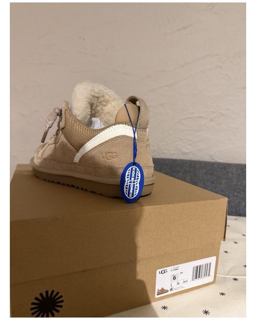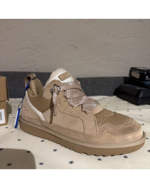 The Ugg Lowmel sand trainers in size 5 (UK) are brand new and stylish. Featuring a sand colour with suede upper material, these sneakers from the UGG product line are perfect for women who love a classic yet modern look. With a standard shoe width and suitable for everyday wear, these trainers are a fashionable and comfortable choice for any casual outfit.