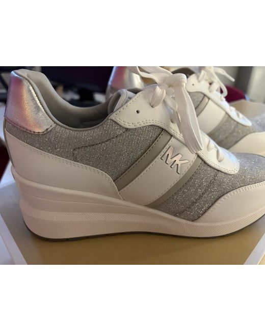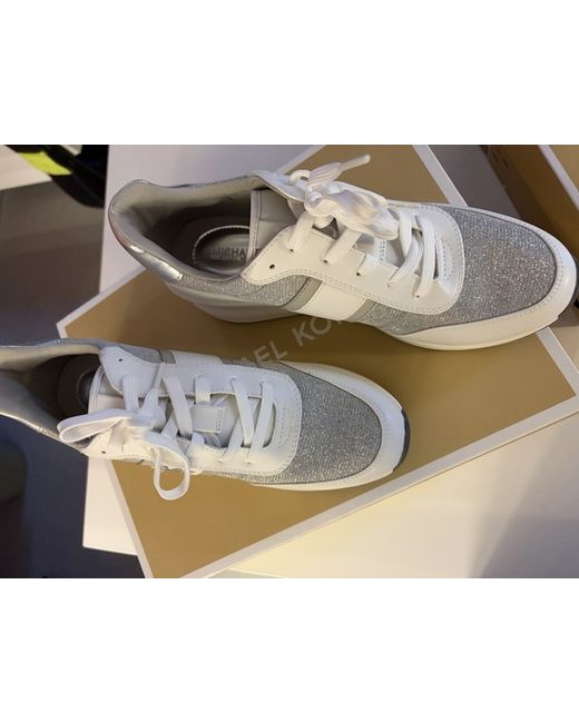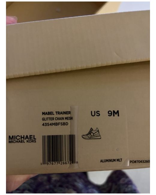 Brand new, Mabel glitter chain mesh ladies lace up trainers, slight heel. Shiny mesh panels, soft leather, embedded with the Michael Kors logo initials on the side.