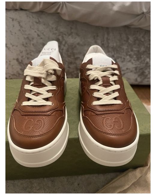 The Gucci Chunky B Women’s Brown Sneaker in UK size 2 is a stylish and comfortable shoe perfect for casual occasions. Made with leather and canvas materials, this sneaker features a lace-up closure and a low-top shoe shaft style. The breathable design and rubber outsole make it ideal for all seasons and activities. With the signature Gucci monogram and GG character detailing, this shoe exudes luxury and elegance. Designed in Italy and part of the Chunky B product line, this sneaker is a must-have for any fashion-forward woman.