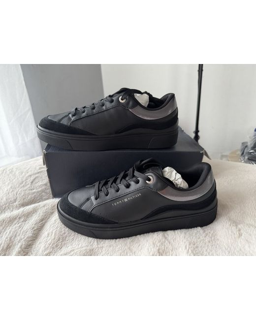 Brand new Tommy Hilfiger trainers in classic black. Shoes are new and unworn, come with the original box and stuffing inside. Modern, minimal design with subtle Tommy Hilfiger logo on the side. Comfortable low-top style with a solid sole – perfect for everyday wear, casual outfits, or smart-casual looks. Details: • Brand: Tommy Hilfiger • Condition: New with box • Colour: Black • Style: Low-top trainers / sneakers • Fastening: Lace-up • Material: Synthetic / eco-leather • Comfortable cushioned sole • Clean, versatile design