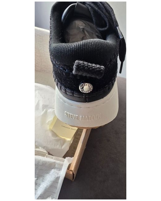 The Steve Madden Doubtake Trainers are stylish black sneakers designed for women. Made by the popular brand Steve Madden, these trainers are perfect for adding a touch of edgy style to any outfit. The sleek design and comfortable fit make them ideal for casual wear or workouts. Upgrade your footwear collection with these trendy sneakers.