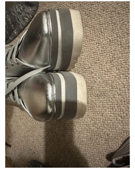 A stunning pair of shoes with only very minor scuffs to the sole as seen in the pictures. Nothing that significantly detracts from them. Silver lace-ups. Moving house so need to clear my wardrobe and not worn often as too high for me. Size 37 a true size 4.