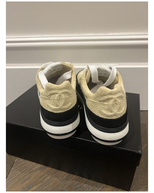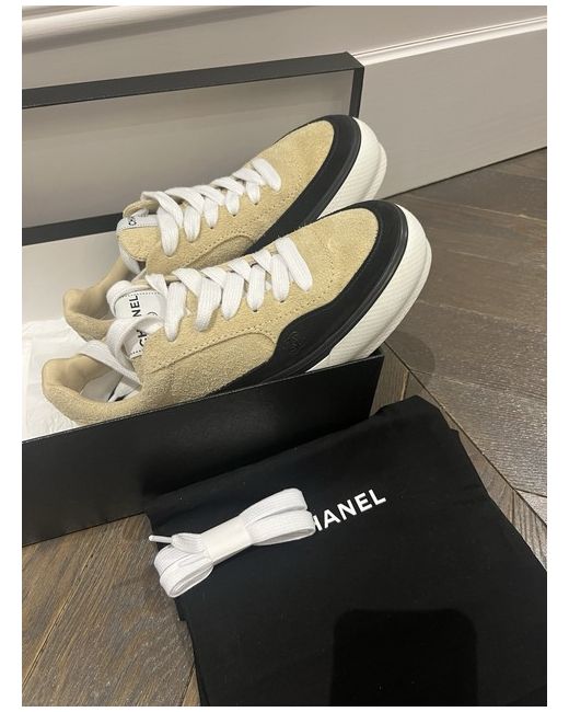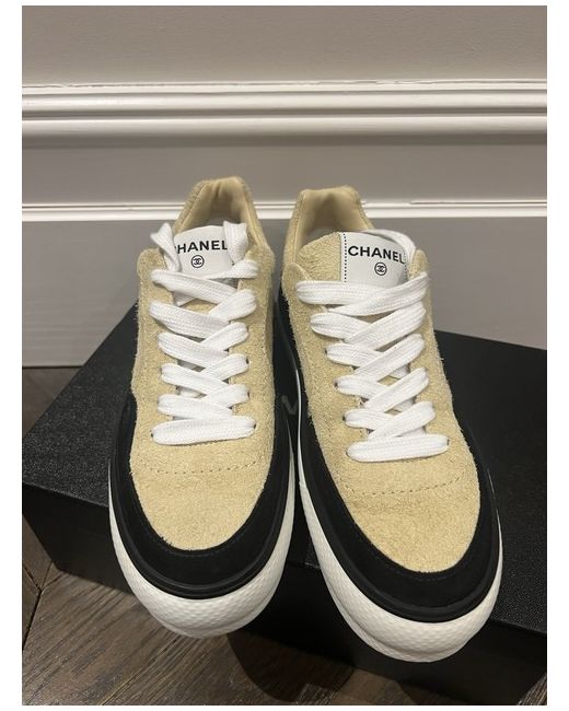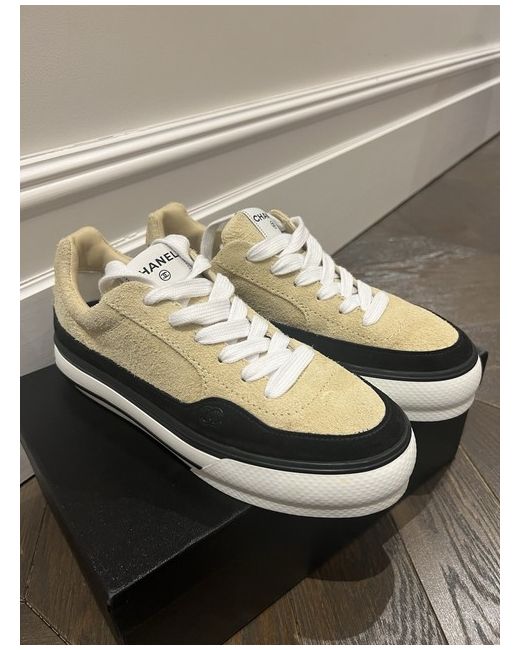 Never worn Chanel sneakers in black and beige with rubber platform soles. 40.5 fits snug. Complete with box