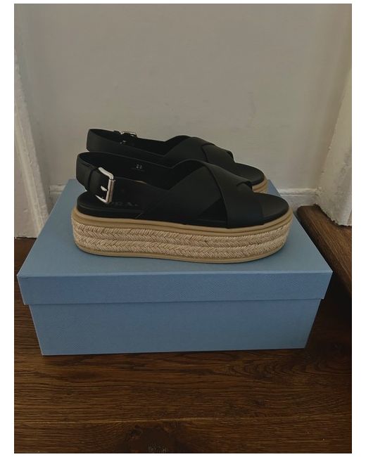 The Prada black platform sandals are a stylish and sophisticated addition to any woman's shoe collection. Made from high-quality leather, these wedge sandals feature a sleek black colour that is versatile and timeless. The platform design adds a touch of glamour and elegance, perfect for any outfit or occasion. The UK size 5 fit is perfect for those who appreciate both fashion and comfort in their footwear choices.