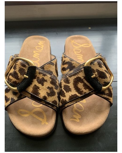 Sam Edelman Darla Leopard Leather Slide Sandals, Cyprus Tan Multi. Real fur origins Vietnam