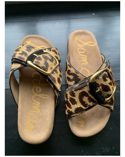 Multicolor Sam EdelmanDarla Leopard Leather Slide Sandals Cyprus Tan Multi
