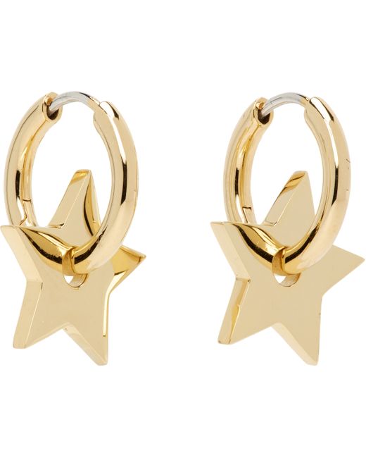 Pair of hoop earrings in 14k gold-plated sterling silver. · Detachable star-shaped charm at hoop · Hinged-post fastening · D0.5 Supplier color: Gold
