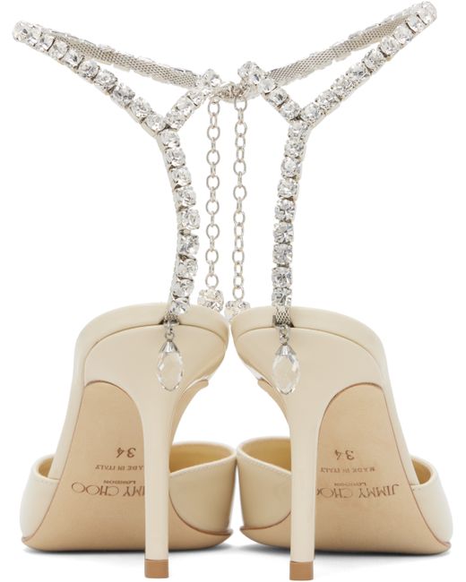 Patent leather heels. · Pointed toe · Cup-chain ankle strap with hook-eye fastening · Buffed leather lining · Covered stiletto heel with rubber injection · Leather sole · Heel: H3 Supplier color: Linen/Crystal