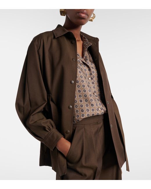 Material: 100% virgin wool. Care instructions: dry clean. Made in Italy. Designer color name: Tabacco Scuro. Wool. Detachable belt. Snap-buttoned cuffs. Pockets: side slit pockets. Closure: snap-buttoned front.