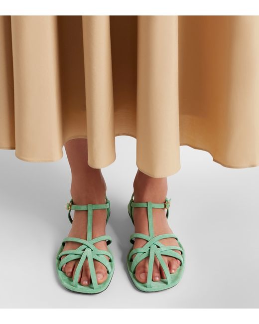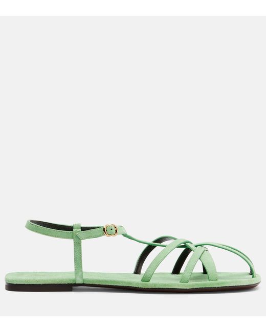 Upper: calf leather (suede). Lining: leather. Sole: leather insole and sole. Toe shape: square open toe. Made in Italy. Includes: shoe box. Designer color name: Pistachio.