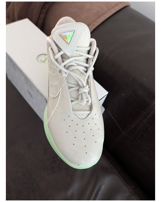 Key Features Design: This edition features the classic "Dunkman" logo, a staple theme in the LeBron James signature line, which appears on the medial midsole shank in vapor green. Materials: The shoe has a light silver-grey upper with a marbled-like effect on the paneling and a breathable mesh upper. Cushioning: The performance features include a large, curved forefoot Air Zoom unit for responsive cornering and a bottom-loaded Air Zoom unit in the heel for added cushioning and support. Stability: A tough plastic plate in the midsole and wing-shaped pieces on the sides help with stability and containment.