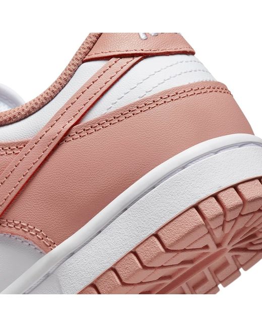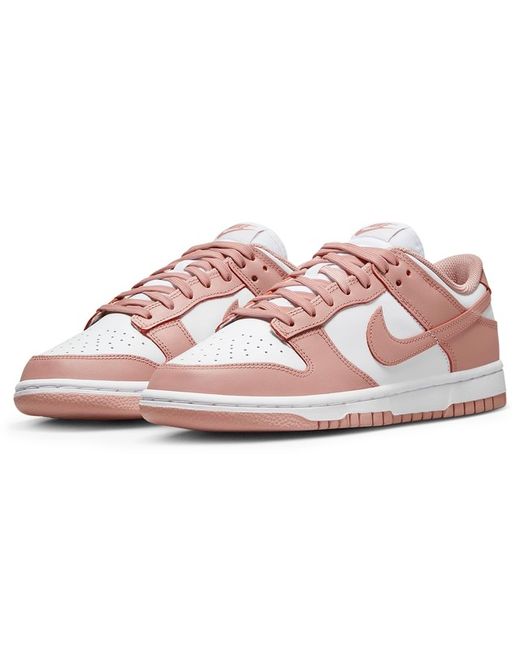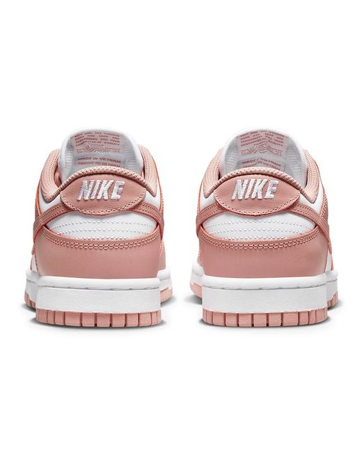 Nike Dunk Low Rose Whisper (W) The Nike Dunk Low Rose Whisper features a white leather upper with peachy pink leather overlays. A white sole with a pink outsole enhances the retro look of Peter Moore's design.