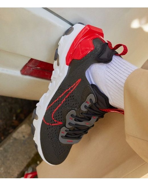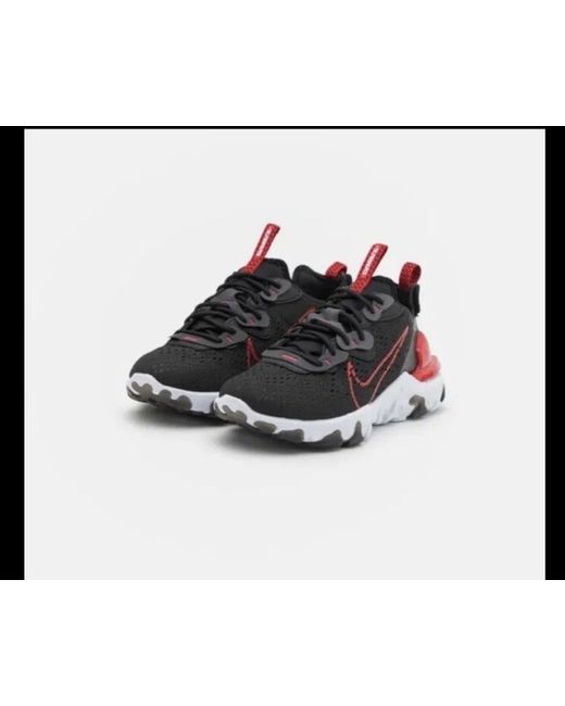 The Nike React Vision in size 11 is a stylish trainer designed for men. This black and white sneaker features a bold red accents, adding a pop of colour to the classic design. With the signature Nike React technology, these sneakers offer comfort and performance for any activity. Get your hands on these brand new black and white with red Nike React Vision trainers today.