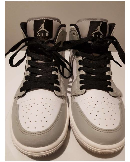 The Jordan 1 Mid is a stylish and comfortable pair of trainers for men, featuring a mid-top design with a lace-up closure. This grey leather shoe is part of the Air Jordan product line and is perfect for casual occasions in the summer season. With a rubber outsole and standard shoe width, these sneakers offer both style and functionality, making them ideal for basketball or everyday wear. The Jordan 1 Mid combines the signature Air Jordan comfort with the classic Jordan brand, perfect for those looking for a versatile and on-trend footwear option.