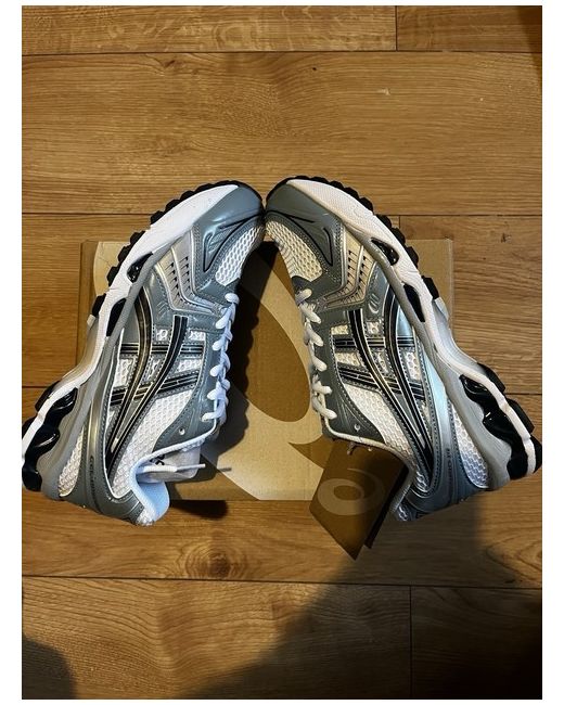 The ASICS Men's Gel Kayano-14 is a stylish and functional sneaker designed for casual occasions during the summer season. Featuring a breathable mesh upper and a comfortable gel insole, this trainer offers support for overpronation, making it ideal for running and jogging activities. The white shoe with a silver character design is part of the ASICS GEL-Kayano product line, known for its quality and performance. With a low top shoe shaft style and lace-up closure, this ASICS shoe is a fashionable and practical choice for men in UK shoe size 7.
