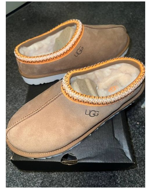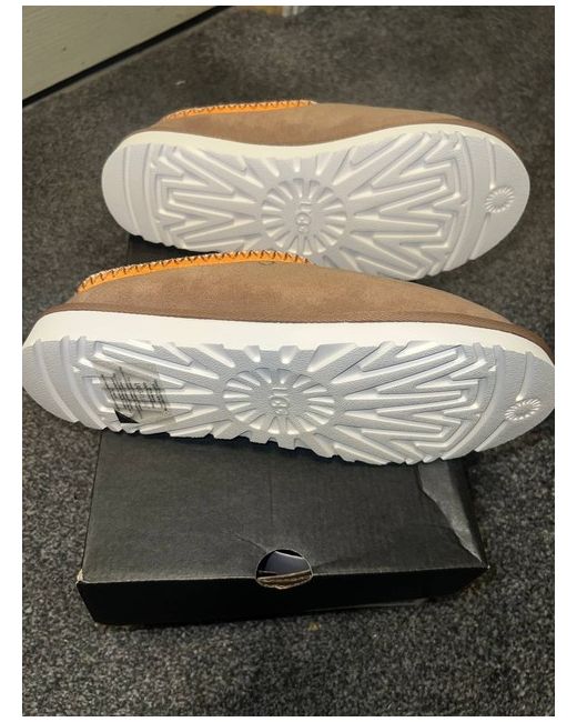 The Men's Uggs Tasman in Chestnut, UK size 8, is a stylish and comfortable slip-on slipper perfect for casual occasions during the winter season. Made from suede with a round toe shape and low heel height, these slippers offer a standard shoe width for ultimate comfort. The brown colour and slip-on style make them a versatile choice for men looking for both style and practicality in their footwear. With the renowned UGG Australia brand, you can be assured of high-quality construction and a classic design that will keep your feet warm and snug.