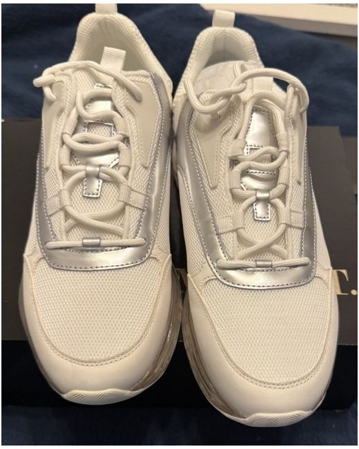 These Men’s Mallet Trainers in size 12 feature a low top shaft style with a lace-up closure, making them ideal for casual occasions. The trainers are in a classic white colour with a standard shoe width, suitable for the summer season. Made of leather with a rubber outsole, they offer comfortable support for everyday wear. With a sleek sneaker style and a fabric lining, these trainers are a stylish and practical choice for any man's wardrobe. Please note that the box is slightly damaged. Brand new and never worn. Sorry but no returns