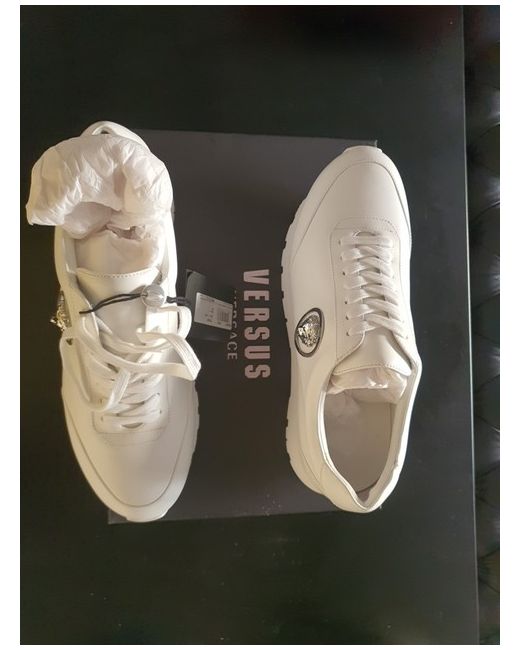The Versace Versus Sneakers in size 430 (9) are stylish trainers for men, featuring a classic white colour and iconic Versace branding. These sneakers are designed with a sleek and modern style, perfect for adding a touch of luxury to any casual outfit. Made by the renowned brand Versace, these trainers are sure to provide both comfort and style for the fashion-conscious man.