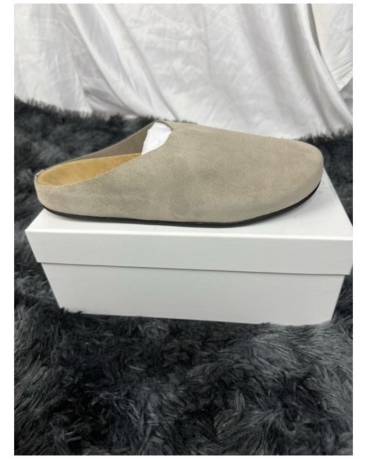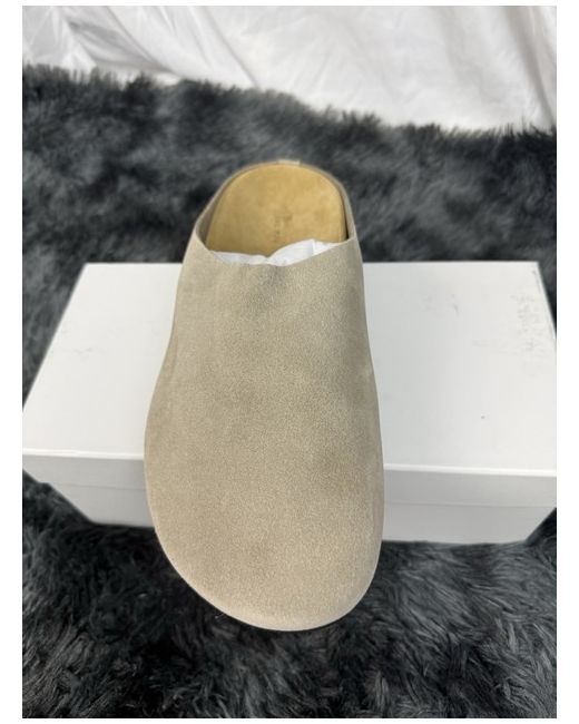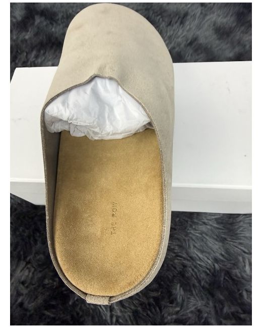 The Row Hugo Slide Sandals in Apricot, UK size 10, are a stylish and comfortable choice for men. Crafted from nubuck leather in a sleek slider design, these slipper sandals are perfect for lounging around the house or casual outings. The beige colour adds a touch of sophistication to any outfit, making these sandals a versatile addition to any man's shoe collection. Ideal for those looking for both quality and style in their footwear.