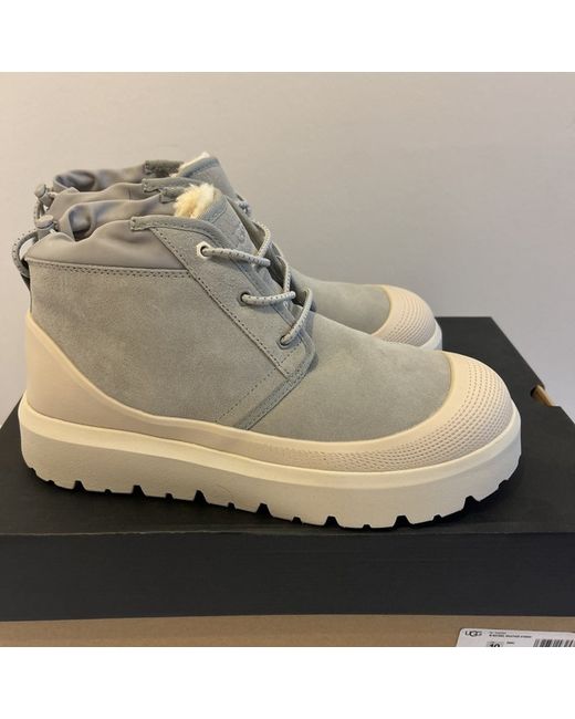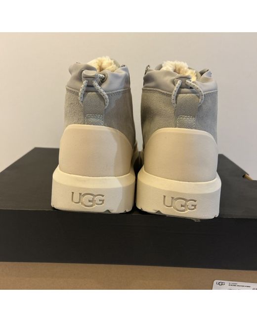 For sale men’s Ugg Brunel weather hybrid boots .the size is uk 9 .the boots are brand new they never been worn outdoors only inside .the colour is light grey and beige.on the right boot there is a tiny mark but hardly noticeable it’s two inches from the laces .the boots will sent special delivery recorded thanks for looking .