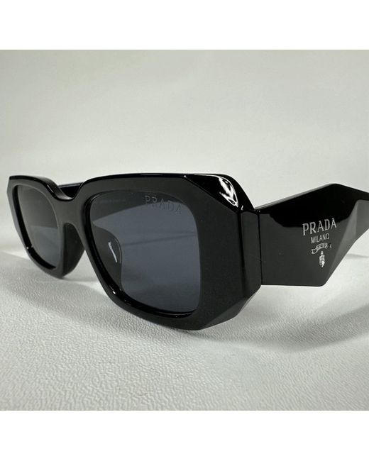 These PRADA Sunglasses in black are a stylish accessory for men, featuring a square design with tinted blue lenses for UV protection. The plastic frames are sleek and durable, perfect for everyday wear. The designer brand adds a touch of luxury to these fashionable sunglasses, making them a must-have addition to any wardrobe. Ideal for those looking for a high-quality and fashionable eyewear option.