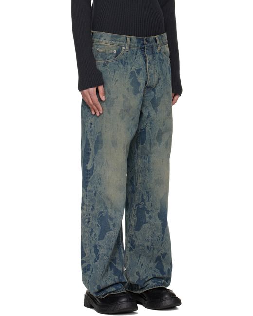 Non-stretch regenerative, organic, and recycled cotton-blend denim jeans. · Printed graphic pattern and fading throughout · Wide-leg · Belt loops · Five-pocket styling · Button fly · Dropped inseam · Logo patch at back waistband · Logo-engraved silver-tone hardware · Contrast stitching in tan Supplier color: Lace denim