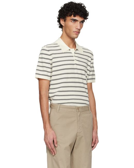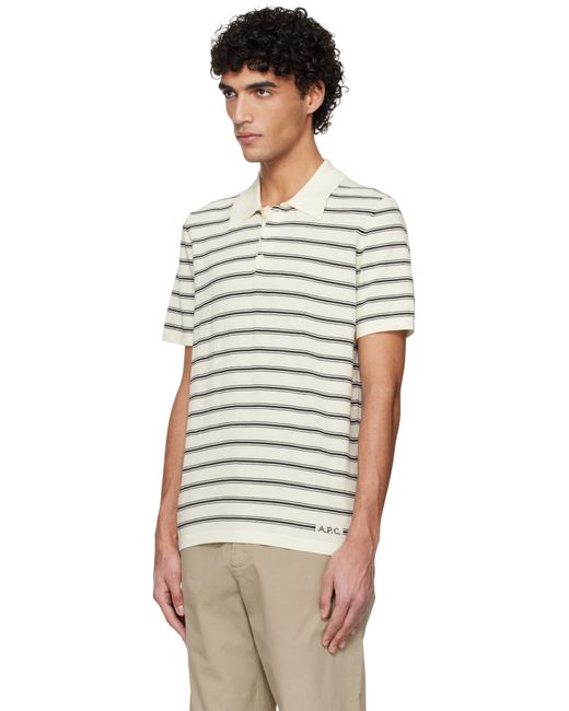 Knit cotton polo. · Stripes throughout · Rib-knit spread collar · Three-button placket · Intarsia logo at front hem Supplier color: Ecru/Black