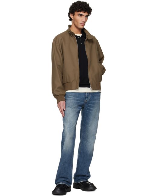 Non-stretch organic cotton-blend jeans. · Fading, whiskering, and distressing throughout · Bootcut · Belt loops · Five-pocket styling · Button fly · Logo patch at back waistband · Logo-engraved silver-tone hardware · Contrast stitching in tan Supplier color: Mid blue cross hatch