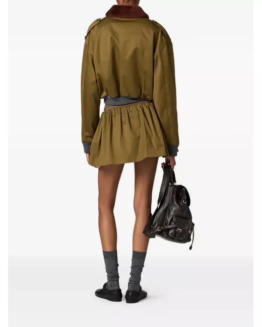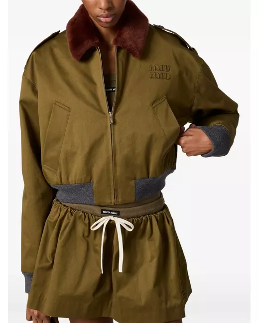 green embroidered logo ribbed cuffs and hem welt pockets zipper closure