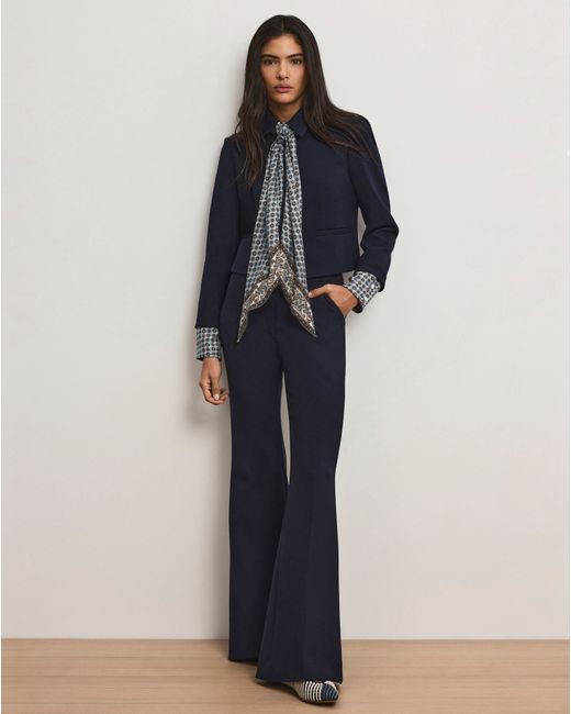 Crafted from our bestselling Transitional Suiting fabric in navy, the Ismena jacket combines structure with comfortable stretch. Featuring a removable custom-printed foulard scarf tie and matching removable peekaboo cuffs, it offers versatile styling options. Designed with a cropped, single-breasted silhouette, it's finished with a classic point collar and welt pockets. Easily dressed up or down, pair it with trousers or denim.63% Polyester, 27% Viscose, 7% Cotton, 3% ElastaneLinings: 100% Polyester, 95% Polyester, 5% ElastaneDry clean onlyMade in the USAStyle #2602SU00211924