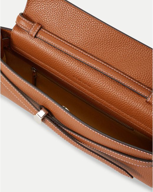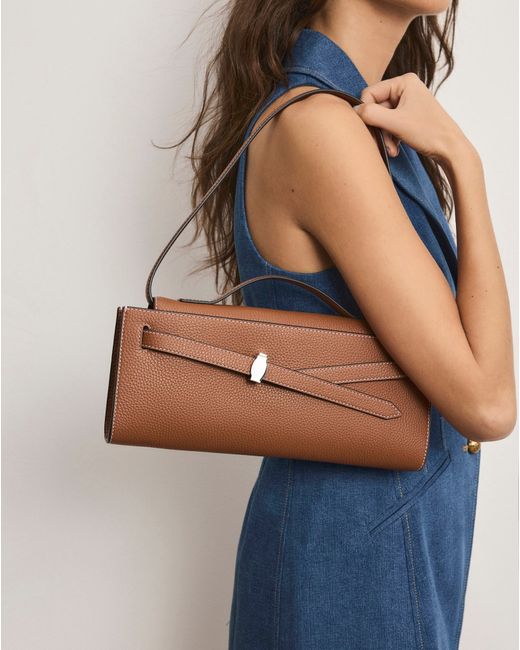Our iconic Dash bag, now as a clutch. Crafted from pebbled tan leather, it carries the essentials you need-including the largest iPhone-and features a slim top handle and an adjustable belted strap. An interior zip pocket keeps cash and credit cards organized and secure, while the removable, adjustable shoulder strap adds hands-free versatility.LeatherLining: MicrosuedeMaterial country of origin: USA12.2" L x 1.8" W x 5.1" HHandle drop: 1.2" Strap drop: 9.1"Closure: Magnetic snapStore in a cool, dry place and wipeany surface dirt with a dry clothStyle #H2602HL123R019